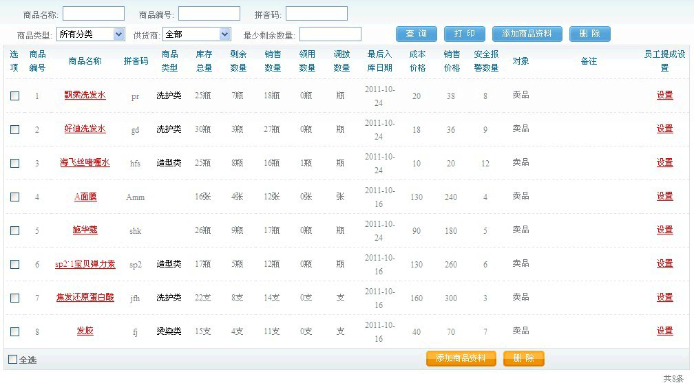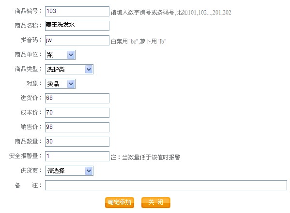 上图是已输入系统的商品资料列表,如果我们再想添加新商品的话,我们只需要点击“添加商品资料”按钮进入到添加商品资料页面即可,我们来看看添加商品资料的功能图: