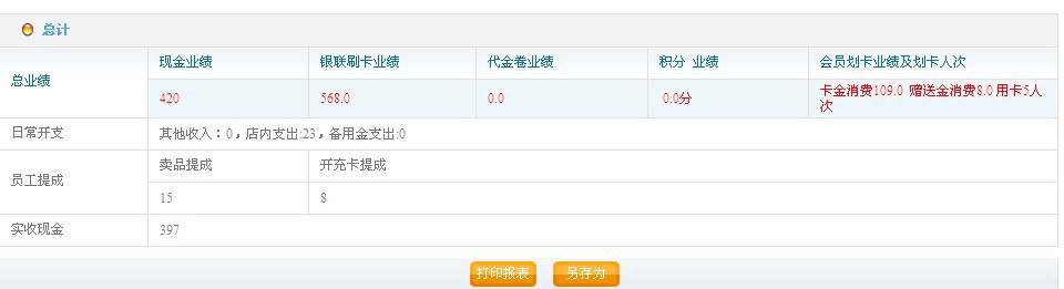 我们再来看看“店内业绩统计表”功能图片
