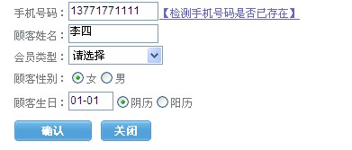 有些在我们店内做了大头项目的客人,我们通常会想保留该顾客的资料,方便对她进行回访或者以后店内有什么优惠活动可以直接发送活动内容短信给她,让她成为我们店内的一个潜在会员。如果想保留她的资料的话,我们在“是否需要保存该顾客的资料”右边的小框内打勾,在出来的页面上填写客人的资料,如下图:
