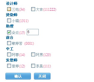 如果是内创或者外创的客人,我们就选择相应的对象。然后在新出来的页面上选择相应的内外创员工,并且在员工右边的输入框内输入他本次内外创的业绩。系统就能自动统计到今天有多少内外创业绩,其相关人员是哪个。
